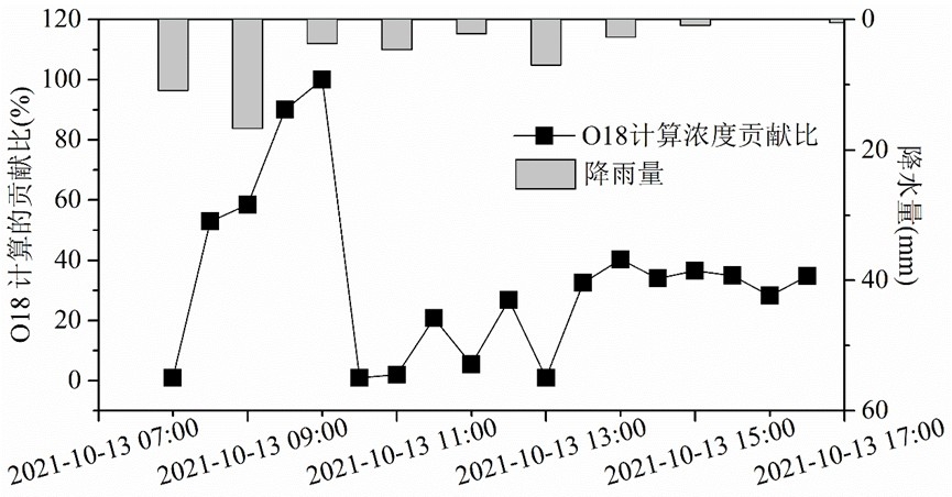 3)降水外水混入定量评估:基于端元混合模型,综合利用TN、TOC和氢氧稳定同位素确定次降水过程中雨水混入百分比(%)。结果表明:由于TN和TOC存在随机波动,利用其确定雨水混入比高达80-90%,高估了雨污混接的情况;而利用氢氧稳定同位素确定的混入比约为20-40%左右。与TN和TOC计算结果相比,基于氧同位素的计算结果更接近真实情况,且较为稳定。